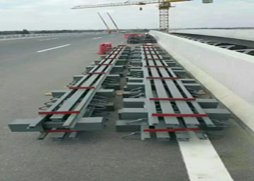 橋梁伸縮縫:指的是為滿足橋面變形的要求,通常在兩梁端之間、梁端與橋臺之間或橋梁的鉸接位置上設(shè)置伸縮縫。要求伸縮縫在平行、垂直于橋梁軸線的兩個(gè)方向,均能自由伸縮,牢固可靠,車輛行駛過時(shí)應(yīng)平順、無突跳與噪聲;要能防止雨水和垃圾泥土滲入阻塞;安裝、檢查、養(yǎng)護(hù)、消除污物都要簡易方便。 在設(shè)置伸縮縫處,欄桿與橋面鋪裝都要斷開。
